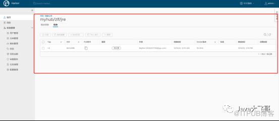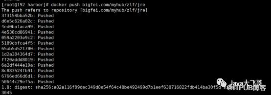 将自制的最小的jre8的镜像推送到私有Docker-hub仓库中如下图所示:
