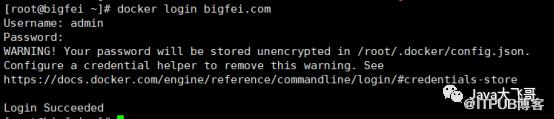 # 指定用户名和密码登录:docker login -u bigfei.com -p xxxxx# 免密登录:docker login bigfei.com# 其它docker主机登录还需要将hubor主机上的证书拷贝到cp bigfei.com.crt /etc/docker/certs.d/bigfei.com/