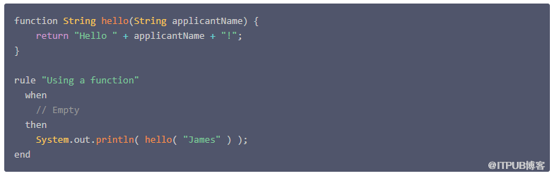 规则文件中的方法和我们平时代码中定义的方法类似,提升规则逻辑的复用。