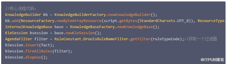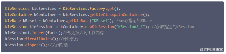 KieSession:KieSession是一个到规则引擎的对话连接,通过它就可以跟规则引擎通讯,并且发起执行规则的操作。例如:通过kSession.insert方法来将事实(Fact)插入到引擎中,也就是Working Memory中,然后通过kSession.fireAllRules方法来通知规则引擎执行规则。