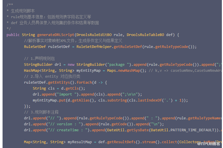 3.将规则集数据与xml解析后的对象进行整合,拼装成一个drl脚本