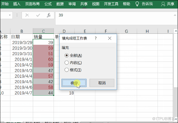 以上就是我们设置条件格式的操作步骤了,批量设置的话,需要点击点击【开始】——【编辑】,然后再点击【填充】——至同组工作表——【全部】,最后点击一下确定就可以了。