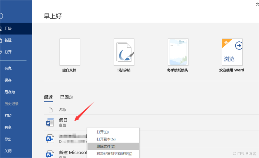 如果我们不喜欢新建的模板,点击文件,选中我们新建的word模板,鼠标右键,将该word模板删除即可。