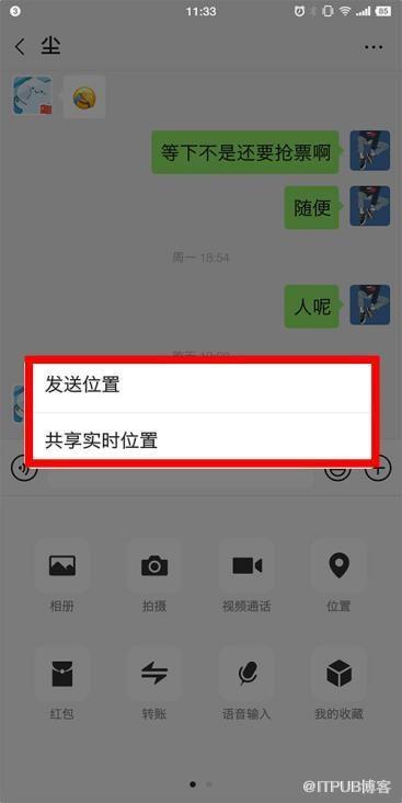 随后屏幕就会出现两个选项,【发送位置】和【共享实时位置】。这两者的区别还是比较明显的,这里就不多说了,然后我们直接选择点击【共享实时位置】。