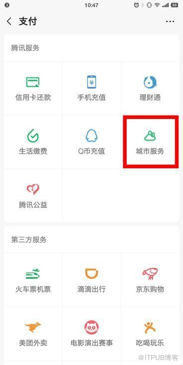 我们放假出行难免会发生拥堵现象,而微信有个功能轻松帮你避免当前拥堵的情况。我们先进入微信支付页面,然后点击【城市服务】。