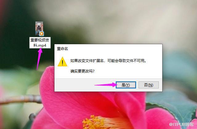 2、接着将原视频后面的【avi】改为【mp4】,按下回车键,这时会出现一个提示窗,选择【是】即可。
