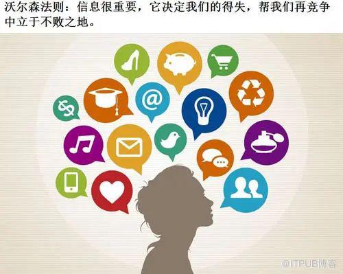 美国企业家S.M.沃尔森提出沃尔森法则,强调信息的重要性,具体指信息与情报是金钱的使者,你能得到多少,往往取决于你能知道多少。在当今这个信息瞬息万变的时代,关注信息就是关注金钱,任何的风吹草动都有可能包含着让我们成功的信息。信息已经成为这个时代的决定性力量,及时拥有信息的人,才能拥有财富。在当今社会里,什么都是用信息来衡量的,信息已经成为了这个时代的象征。