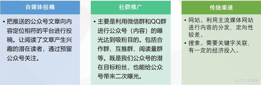 自媒体和社群是两大不可多得的内容分发平台,它们巨大的兼容性,让各式各样的内容得到了展示和传播。挖掘并利用自媒体/社群进行内容推广,可以扩大目标受众群,提高公众号知名度,把平台里面的用户吸引进来,成为我们的关注粉丝。此外,还有些传统渠道也需要投放。下面对比下主要的自媒体平台。
