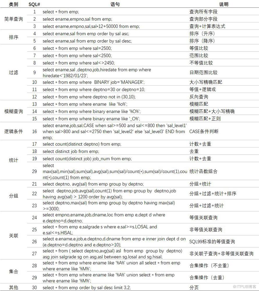 根据SQL特点,将其归纳为十个大类。每类抽象出有代表性的若干语句,作为测试语句。