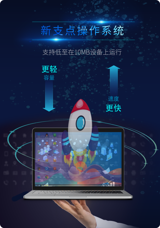最厉害的地方是,全新版本的新支点操作系统采用微内核设计,工业级、轻量级的系统,可以在低至10MB的设备上运行,10MB是什么概念?就是1张高清图的大小,或2首音乐的大小,这样几乎可以在所有大大小小的智能设备上使用新支点操作系统了。