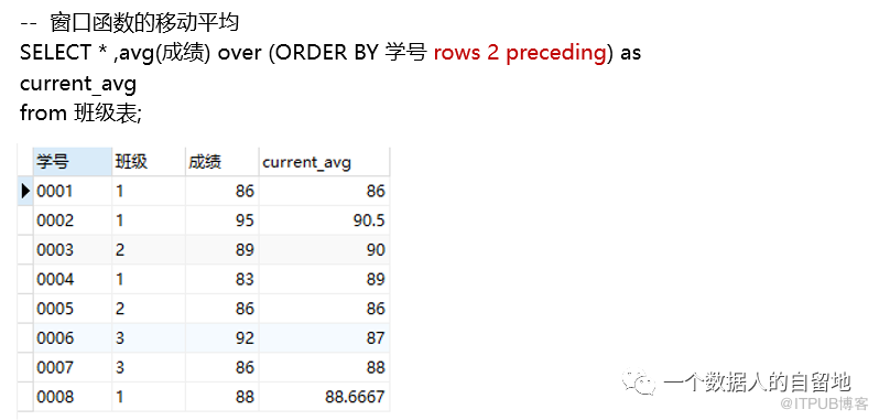 窗口函数除了能解决以上的应用外,还可以实现移动平均,或者移动求和等,以移动平均为例: