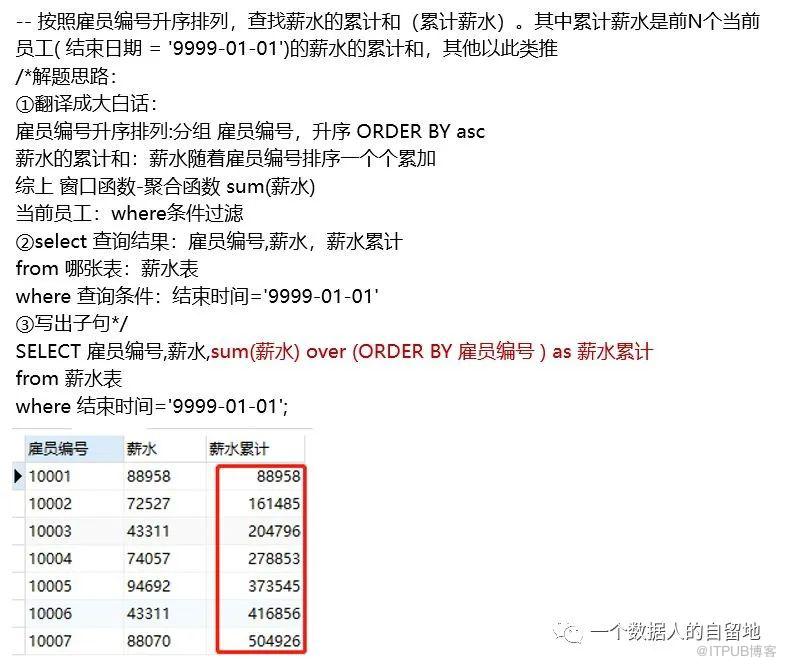 select 列1,列2, sum(列名) over (order by ‹用于排序的列名›) as 累计值的别名 from 表名;在开篇对比中,我有说到关联子查询,毫无疑问,接下来的问题和”每一组对比”相关,那么如何在每个组里比较?