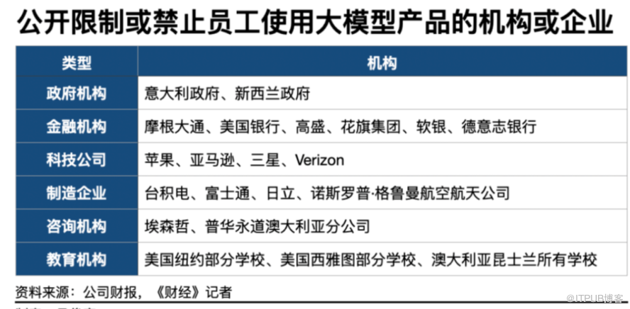 当前在海外市场,部分政府、金融机构、电信运营商、制造企业甚至是科技公司已经明确禁止或限制员工在工作场合使用ChatGPT等大模型产品。其中包括苹果、三星、摩根大通、花旗银行等知名企业。理由通常是,担心专利或机密资讯泄密、客户资料外流。