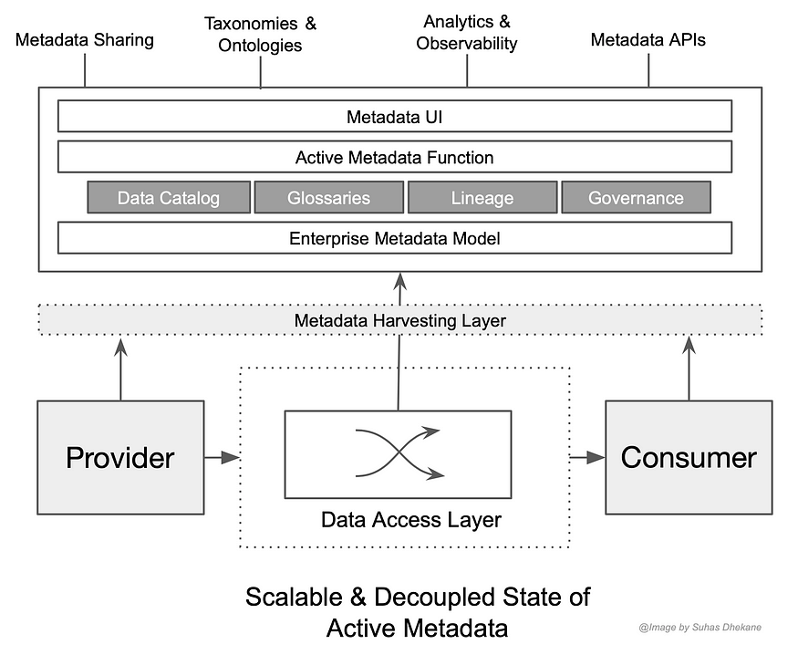 从上下文来看,元数据管理是一个平台,而数据目录是该平台的众多功能之一。也许,这是最重要的能力。下图的主动元数据平台和突出显示的层表明了这一点。