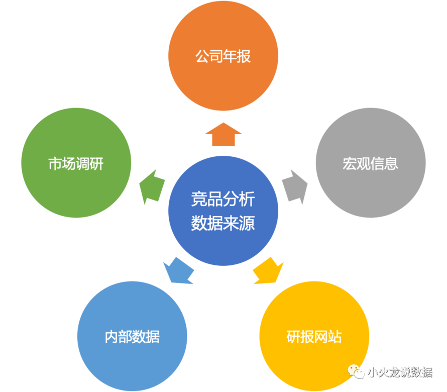 提到了竞品分析的数据表现,那这些数据都是从哪里获取的呢?常见的获取渠道主要有以下五个,如下图所示。