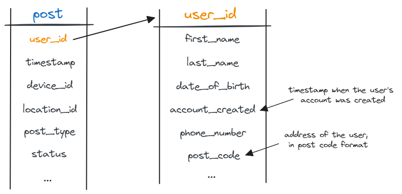 我们在事实表“post”中设置了多个属性。如果我们想要有关此表的某个属性(例如user_id)的更多详细信息,该怎么办?