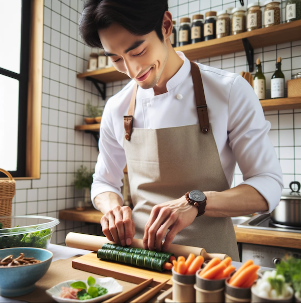 这张图展示了一位专精于几种菜系的专业厨师,他穿着传统的厨师服装,专注于制作一种特定的菜肴,周围环境简洁,只有必需的烹饪设备。这象征着传统人工智能技术的特点,即专精且效率高,但范围有限。