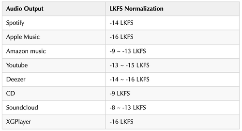 LKFS/LUFS - Loudness K-weighted Full Scale,国际电信联盟制定的响度测量单位,即相对于满量程的 K 加权响度。LUFS 是欧洲广播联盟在 LKFS 基础上制定的(没谈拢),目前而言两者可以等价。