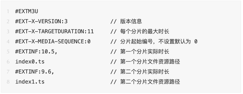 M3U8/TS 是 HLS 协议的封装格式,分别表示播放列表文件和资源分片文件。.m3u8 的索引文件 是一个播放列表文件,且文件编码必须是 UTF-8 格式。TS 流最早应用于数字电视领域,包含十几个配置信息项,TS 流中的视频格式是 MPEG-2 TS。Apple 公司推出的 HLS 协议对 MPEG-2 TS 流做了精减,只保留了两个最基本的配置表 PAT 和 PMT,再加上音视频数据流就形成了现在的 HLS 协议,即由 PAT + PMT + TS 数据流组成。其中,TS 数据中的视频数据采用 H.264/H.265 编码,而音频数据采用 AAC/MP3 编码。