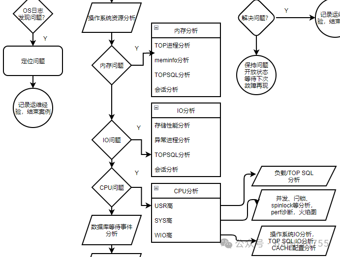 基于我今天介绍的方案,针对一个集中式国产数据库,哪怕你以前没有怎么接触过,也可以轻松的进行故障、性能分析了。这套方案,基本上可以覆盖80%以上的常见问题。大家如果有兴趣可以在遇到问题的时候试一试。分布式数据库的诊断方法类似,不过有更复杂的逻辑,等我有空的时候再画一张图吧。