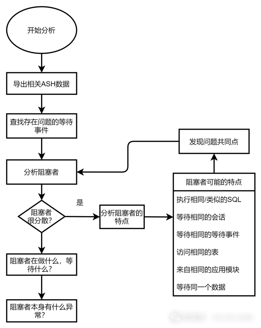 “AWR”报告比较适合于宏观分析,那么ASH数据在微观分析方面很有价值。比如我们从“AWR”报告中看出行锁等待是引发性能问题的关键。那么我们就需要去定位为什么行锁等待会那么严重。这时候AWR报告不一定能发挥作用了。有可能行锁等待只持续了几分钟,而AWR报告是1小时采样的,无法通过细微的分析最终定位问题的根因。另外锁等待或阻塞类的问题,在ASH数据里是能够明确查到阻塞者的。找出阻塞者,分析阻塞者在做什么,在等待什么,往往是定位问题根因的关键。