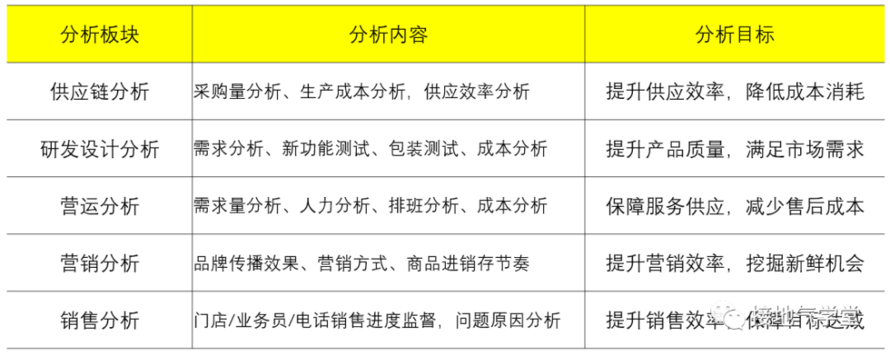 这五大板块,也带来了相应的数据分析需求(如下图)。