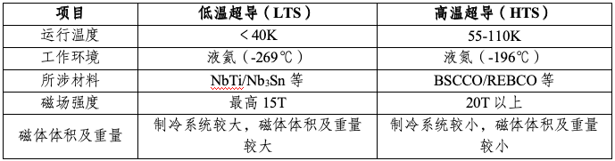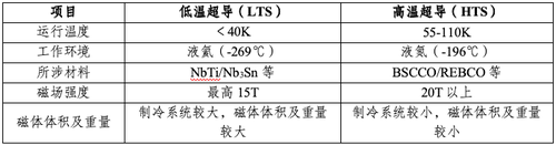 图表 1 高温超导材料和低温超导材料特性对比