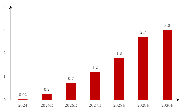 目前超导感应加热设备的应用规模有限。根据赛迪数据,2024年全球用于超导感应加热设备的高温超导材料规模仅为0.02亿元。随着相关设备的交付和运营,以及汽车轻量化、航空和民用高科技工业的加速发展,钛材市场对超导感应加热设备的需求逐年增长,在轻合金加工材料(如铝镁合金等)市场领域存在良好的替代需求,这一规模将于2030年增长至3.0亿元。