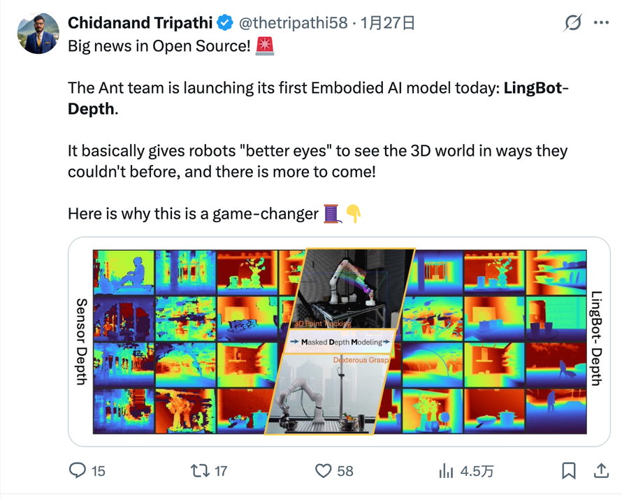 LingBot-Depth率先引发关注,有分析师称其为“破局一手”,让机器人拥有更好的“眼睛”。