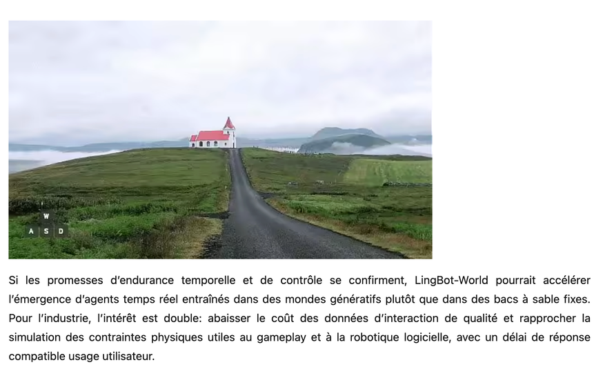 法国游戏评测网站PauseHardware指出,如果在长时序一致性和控制能力方面得到验证,LingBot-World将加速推动实时智能体的发展。对产业界而言,这一进展具有双重价值:一方面,可显著降低高质量交互数据的获取成本,另一方面,则能使仿真环境更贴近对游戏玩法和软件机器人至关重要的物理条件,同时确保与用户实际使用需求相匹配的响应延迟。