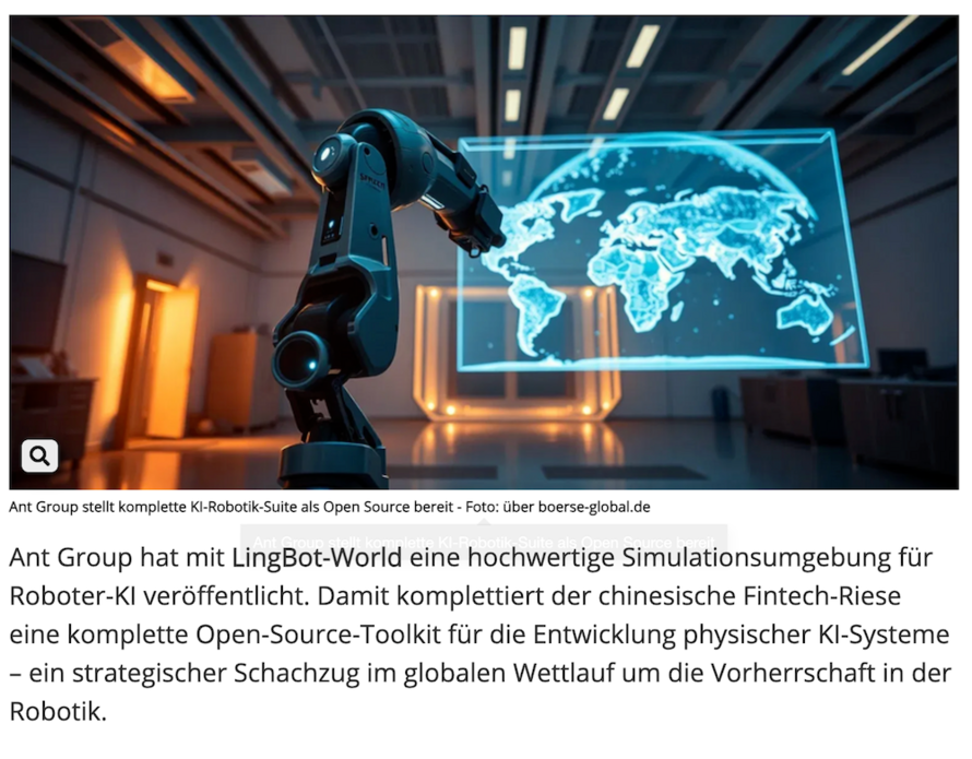德国最大财经网站之一AdHocNew更是给予了高度评价,认为此次开源发布是蚂蚁集团在全球机器人领域主导权争夺战中的一项战略性举措,意味着其正在成为不断增长的人形机器人和物理AI市场中的核心推动者。