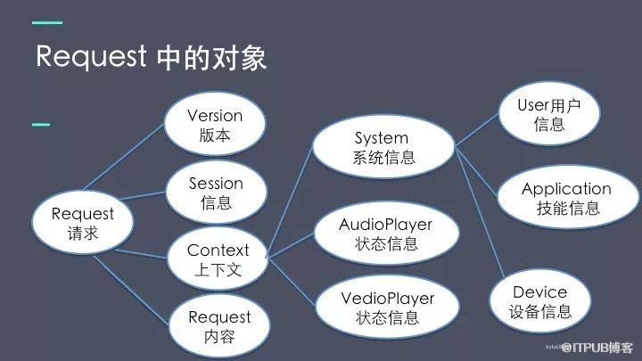 其中Context是一个非常重要的字段,不仅包含了AudioPlayer和VideoPlayer的播放状态信息,而且在system字段中包括了用户的信息和服务技能分相关信息,针对Device设备信息可以面向不同的终端设备完成不同业务逻辑的定制。