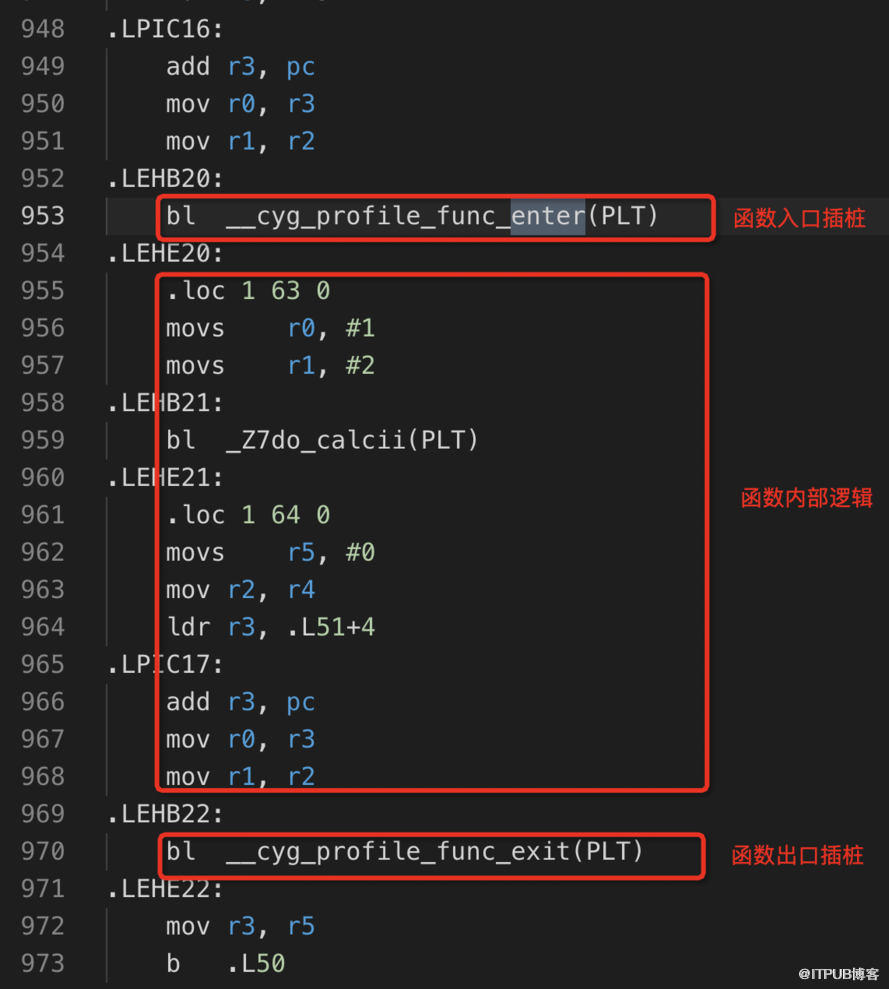 这里需要格外注意,某些不需要插桩的函数可以使用__attribute__((no_instrument_function))来向编译器声明。