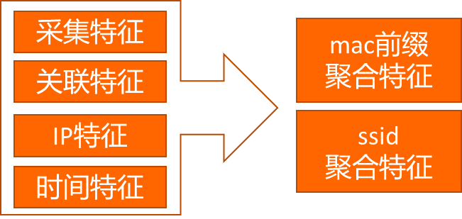 为了 进一步 提升 分类的准召率,我们 不仅 从 定位 点的 聚集 维度来提取特征,还增加了 信号 强度、 关联 特征 、IP特征、时 间特征等 , 以下 进行 简要介绍: