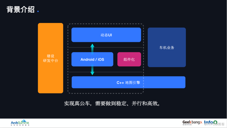 高德是国内领先的数字地图内容、导航和位置服务解决方案提供商,端上分手机和车机两条主线。近年来,高德业务迅猛发展,人员规模急速扩张,代码量急剧膨胀,如何提高团队高效并行作战的能力,端架构在一致性和动态性方面做了很多尝试:从最初的双端原生单体架构,到地图引擎下沉C++,再到动态UI框架的建设,收到了一定的成效, 但面对业务持续的高速发展,依然还有很多方面需要继续完善。