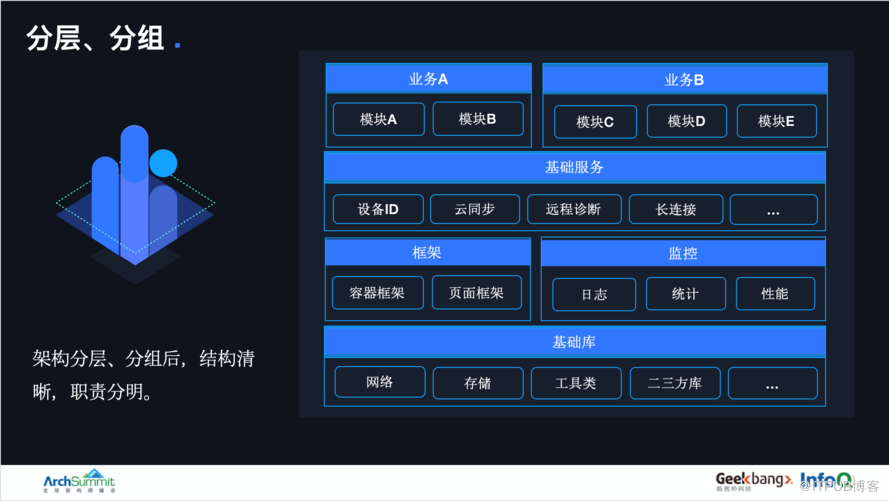 通过架构的分层、分组,让模块的归属、职责清晰化。