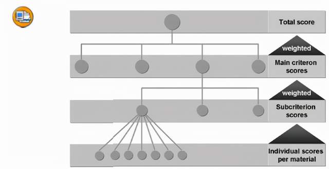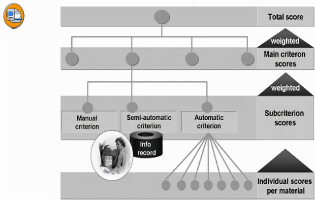 - The scores for the sub-criteria are calculated at the time of the evaluation, and represent the average of the individual scores for the relevant materials.