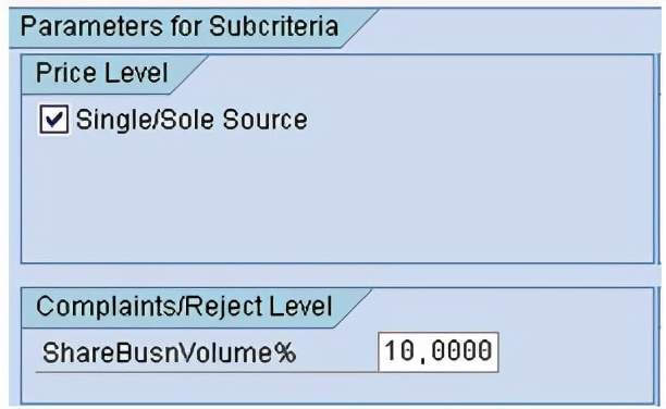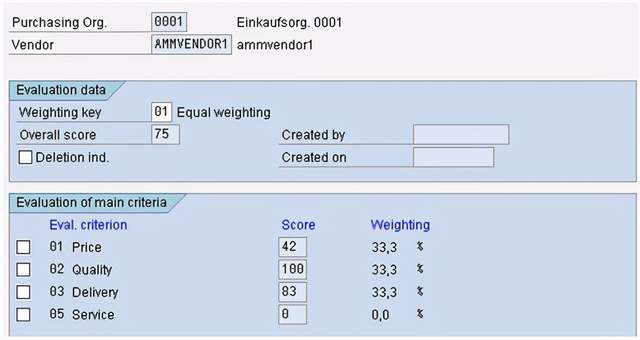 - can define different weightings for individual sub-criteria for each purchasing org. in customizing. Applies to all vendors within the purchasing org.