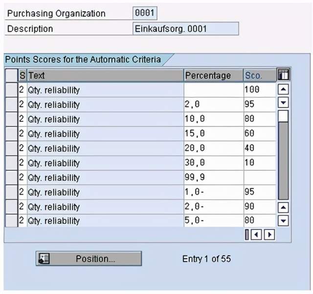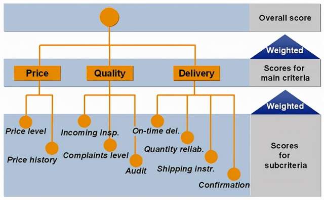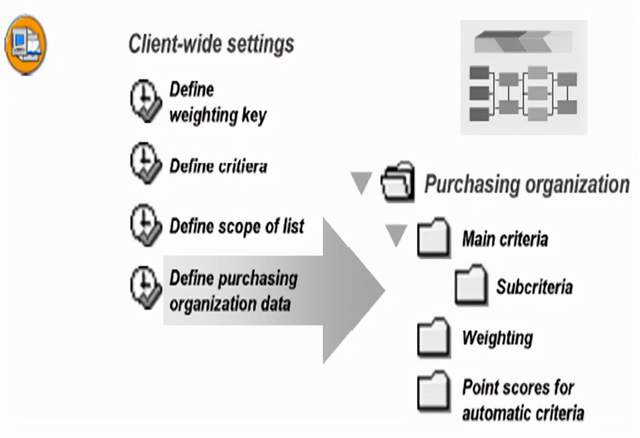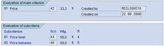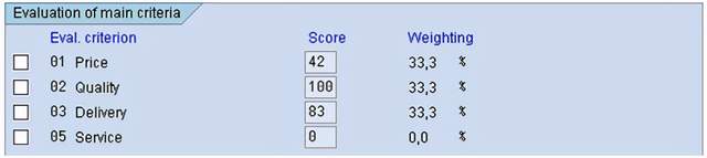- For each purchasing organization, it has to be decided which main criteria are to comprise the basis for the overall score. The following main criteria are provided in standard: