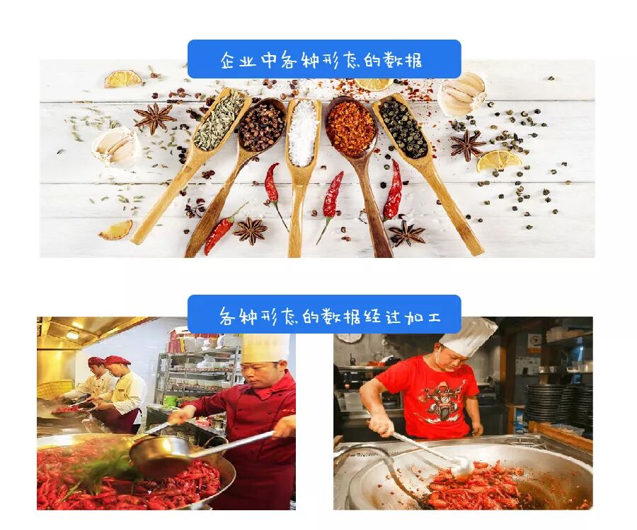 我们继续以小龙虾为例,说说数据中台与数据平台的差别。为了快速烹饪出美味的小龙虾,一方面,需要设备齐全的厨房,提供制作麻辣小龙虾的烹饪工具。另一方面,还需要一个好厨师,通过对火候、配料比例、调味时机的精准把握才能制作出美味的麻辣小龙虾。