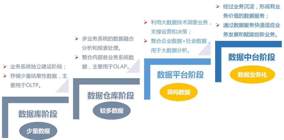 帮助企业基于业务知识的积累和沉淀,真正的将数据回馈到业务中,服务于业务系统,如,基于用户的浏览及购买行为数据,进行精准营销,所以此时数据平台已经无法满足企业的发展需要,从而产生了数据中台的理念。