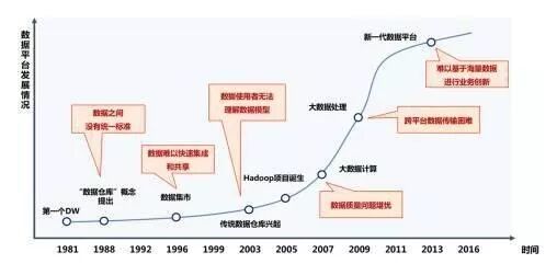 大数据不是凭空而来,1981 年第一个数据仓库诞生,到现在已经有了近 40 年的历史,而国内数据平台的建设大概从 90 年代末就开始了,从第一代架构出现,到现在已经历了近 20 年的时间。