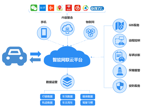 “云”侧主要分为三部分内容,首先是跟车强相关的部分,比如对车辆的控制、诊断等与整车厂和传统的车联网供应商关系比较密切;还有很多互联网资源需要云平台做内容聚合后再给车辆进行控制;另外还有对物联网的设备进行融合。