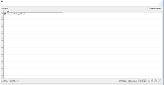 选取之前导出的SQL脚本,正确填写目的端数据库的IP、端口、用户名、口令等,点击添加文件添加导出的SQL文件,如下: