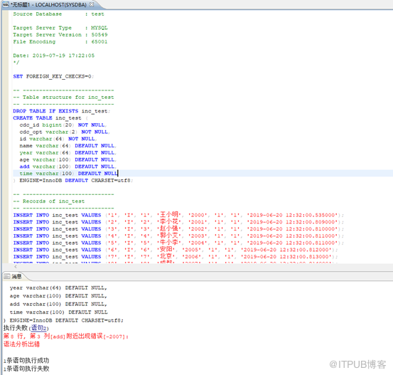 ①在“窗口—视图—SQL 日志”中可查看执行的SQL 语句是否成功或者失败,也可显示出具体执行的SQL 语句、执行时间及报错信息。