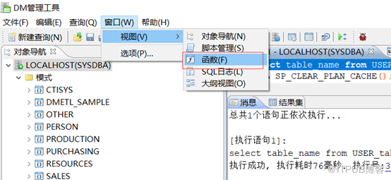 ①在使用SQL 进行查询一些事物时,需要用到一些不同类型的函数,这时我们可以再DM 管理工具中找到函数进行查找,能查找出具体函数的使用方法和含义。