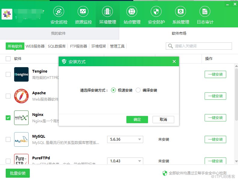 安装方式也可以自己选择是极速安装还是编译安装