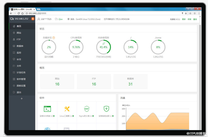 宝塔Linux管理面板可以一键部署:LAMP/LNMP/Tomcat/Node.js、网站、数据库、FTP、SSL ,通过Web端轻松管理服务器。