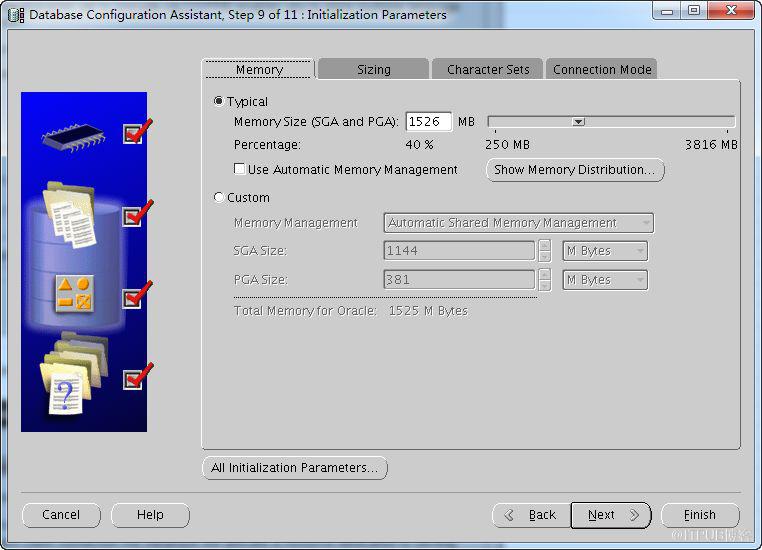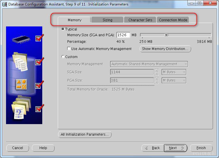 设置内存,大小,字符集,连接模式,基本上保持默认不动即可