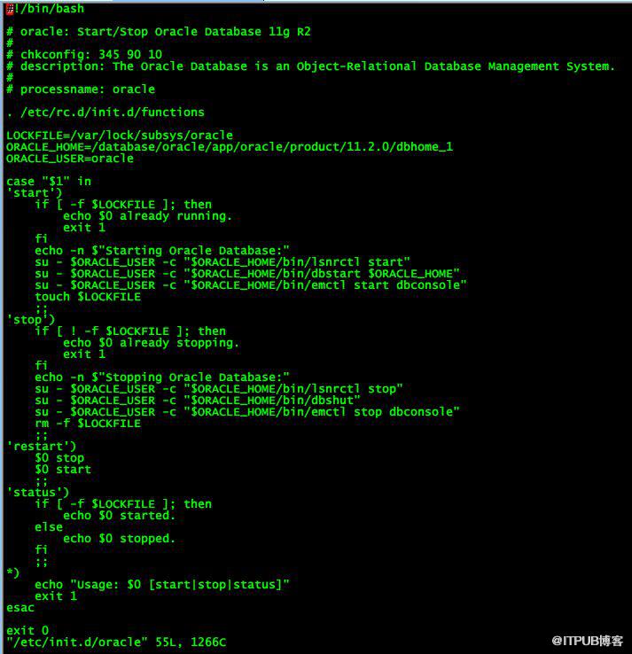 4、编辑开机自动启动Oracle数据库的初始化脚本